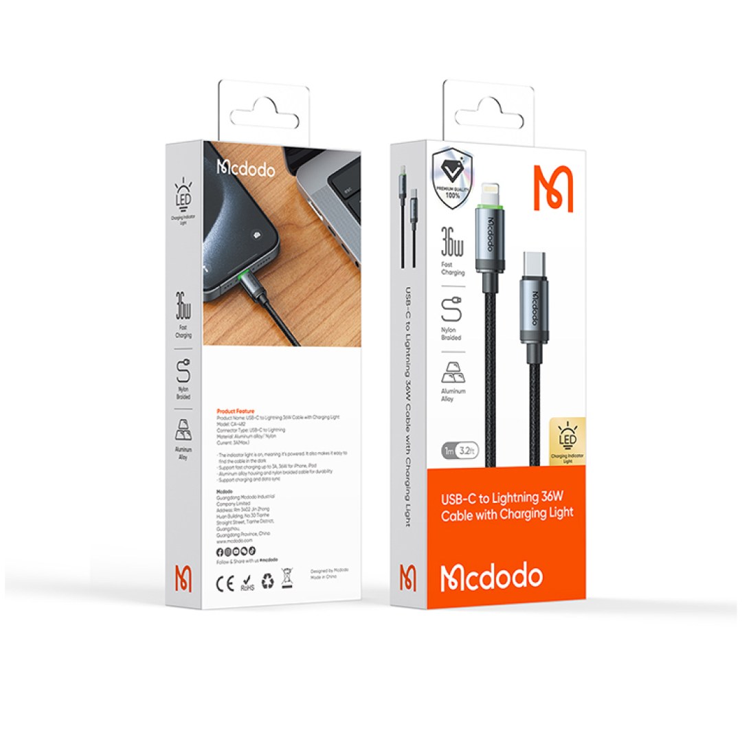 مشخصات کابل شارژ سریع تایپ سی به لایتنینگ 36 وات مک دودو مدل Mcdodo CA-482
