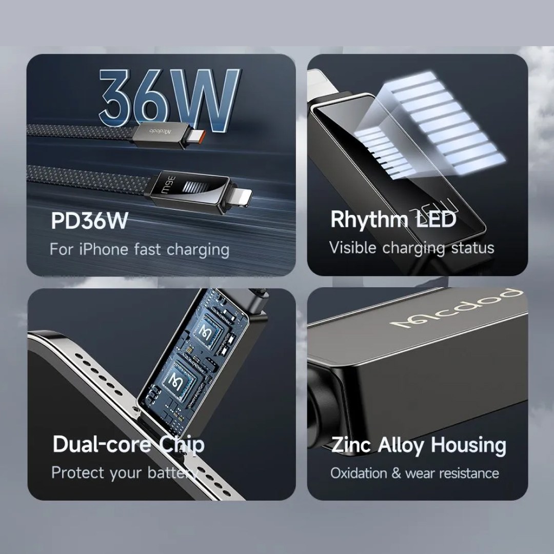 مشخصات کابل شارژ سریع تایپ سی به لایتنینگ 36 وات مک دودو مدل Mcdodo CA-496