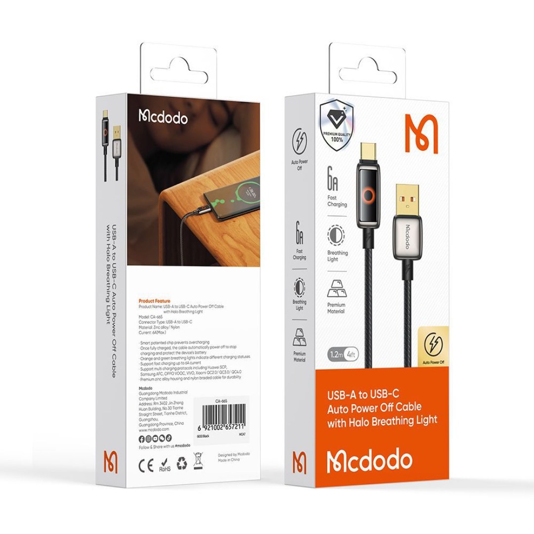 MCDODO CA-665 Usb to Type-c 100W Auto Power Off Cable with Halo Breathing light