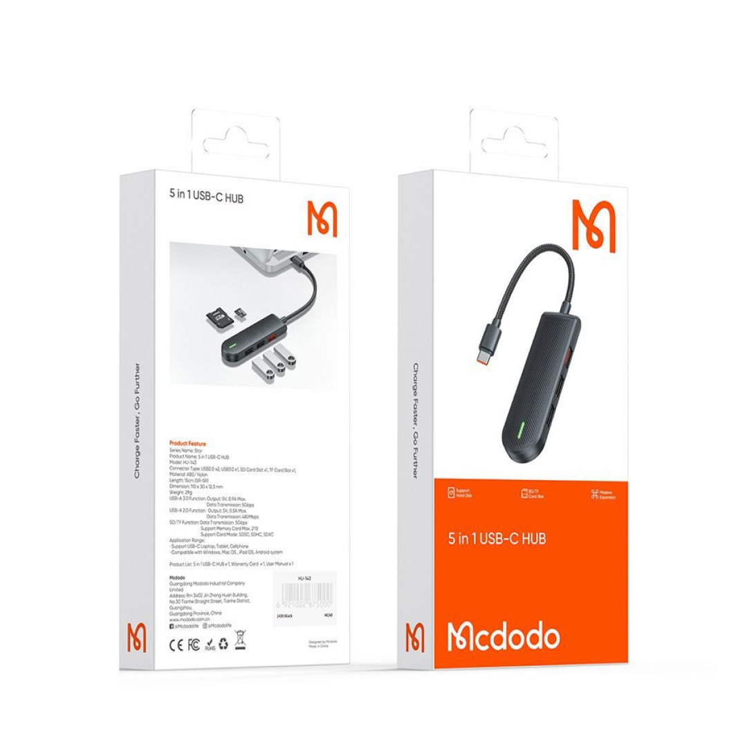 مشخصات هاب 5 پورت تایپ سی مک دودو مدل Mcdodo HU-143
