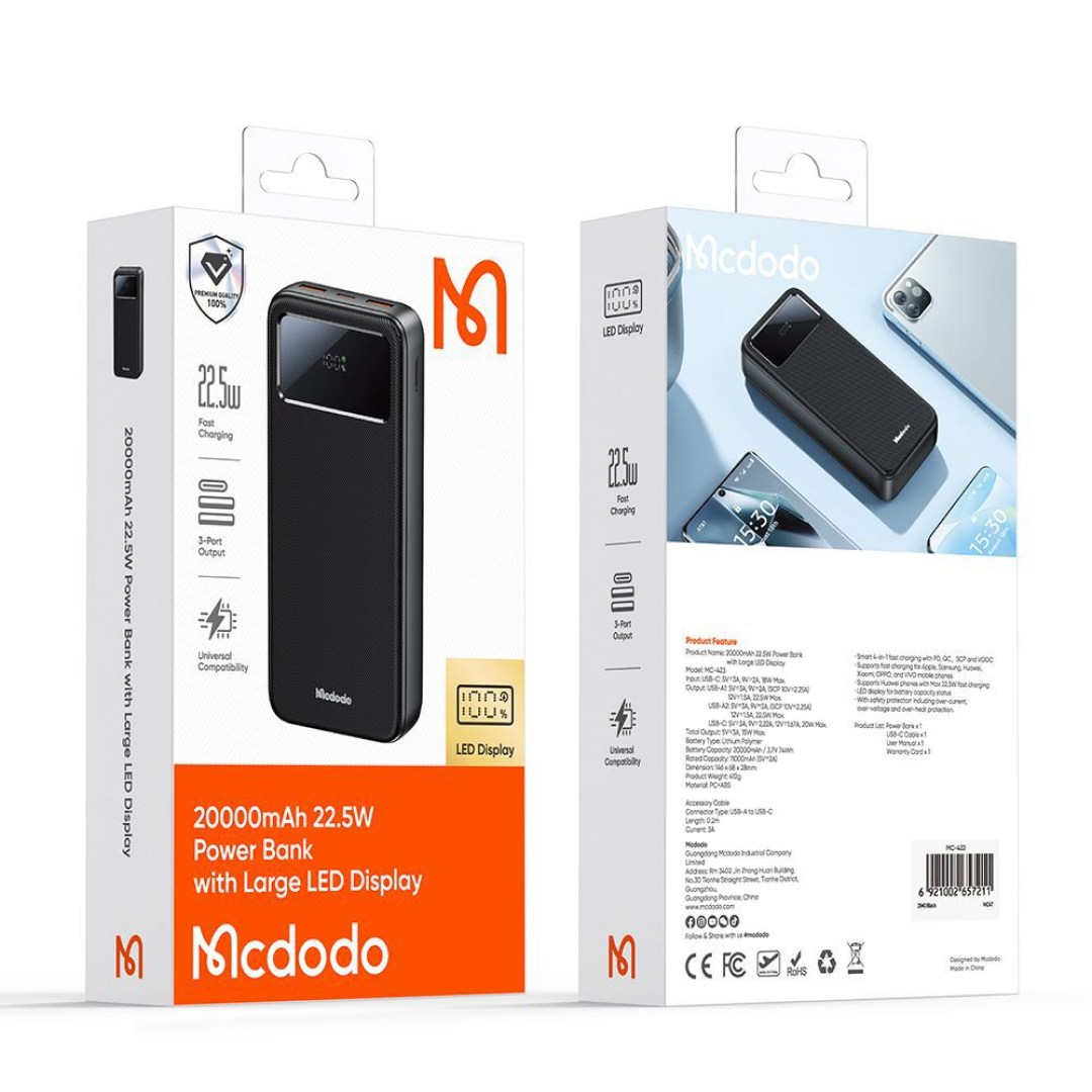 Mcdodo MC-423 22.5W with large led display Power Bank 20000mah